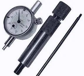 - Insérez le comparateur dans l'adaptateur (la plage de mesure approximative est de 0-3 mm) avec une précharge d'environ 2,0 mm.