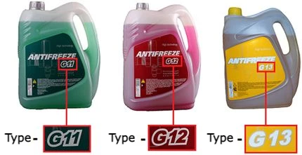 Par conséquent, seuls les hybrides peuvent être mélangés avec des hybrides, les carboxylates avec des carboxylates et les lobrides avec des lobrides. Le mélange d'antigels de classes différentes est strictement interdit. La seule exception est l'antigel G12+, qui peut être ajouté aux fluides G11 et G12.